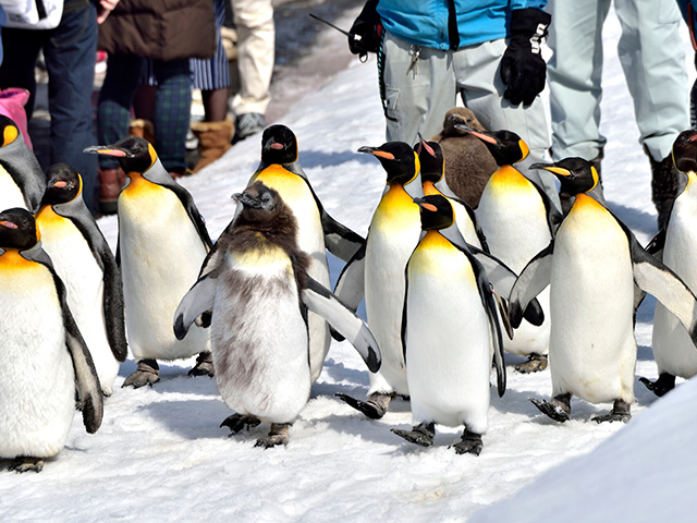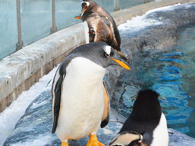 - 冬になり、雪が積もると運動不足解消のため、「ペンギンの散歩」が始まります。約30分かけ、園内の散歩コースをかわいいペンギンたちがよちよち行進。混雑必須なので30分前にはスタンバイしよう♪
